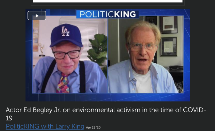 April 23, 2020 by TURK PR @edbegleyjr #interview #politickingwithlarryking @kingsthings #environmentalist #begleyliving begleyliving.com #turkpr #turkprclient #earthday #livinggreen #ecofriendly #greenliving #savetheearth @blessthismesstv #emmynominee #hollywoodicon http://www.ora.tv/politicking/2020/4/23/plk5119_begleyjr_yt-splits-0_1rmgn02ai5bb Share this: Click to email a link to a friend (Opens in new window) Email Click to share on X (Opens in new window) X Click to share on Facebook (Opens in new window) Facebook Click to share on LinkedIn (Opens in new window) LinkedIn Click to print (Opens in new window) Print More Click to share on Tumblr (Opens in new window) Tumblr Click to share on Pinterest (Opens in new window) Pinterest Like Loading... Related