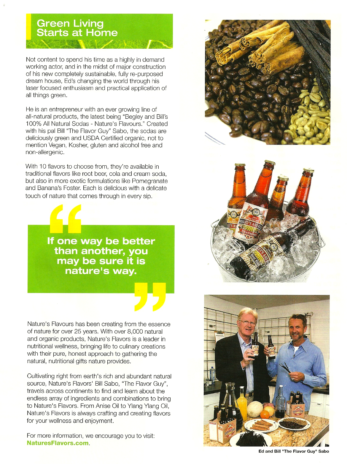 Join Begley’s & Bill’s co-creators, Ed Begley, Jr., Rachelle Carson-Begley and Bill Sabo ‘The Flavor Guy’ on Saturday, September 28th at 9:30 am PST on “Health, Beauty, Life”. Learn about the making of their innovative soda line, their new inter-net show “On Begley Street” and the building of their new lead platinum home!