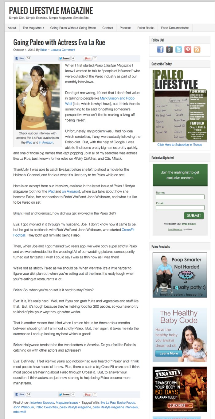 People Magazine coverage of Eva La Rue joining Susan Lucci and cast members of All My Children for a Reunion on Hallmark’s Home & Family